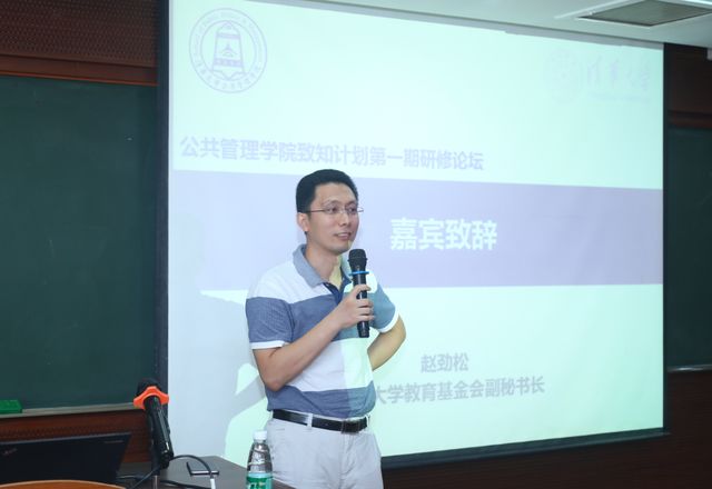 清华大学教育基金会副秘书长赵劲松回顾了校友们在基金会成长发展过程中给予的支持和帮助,他也对为此计划提供资金支持并成立专项基金的单位表示感谢。作为公管学院的校友,他也表示希望致知计划能够辐射更多人,服务校友成长。
