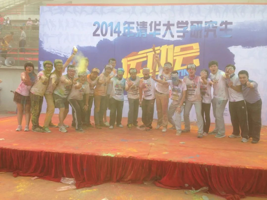 2014年清华大学研究生运动会Color Run彩色跑后合影(中间是史宗恺老师,右7为杭承政)