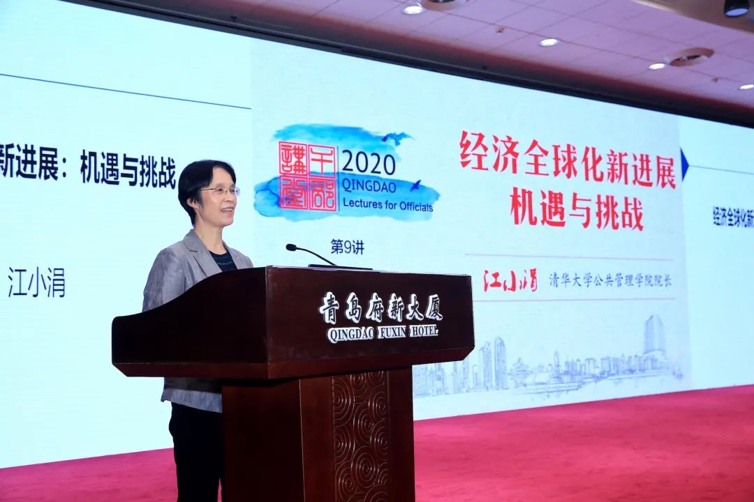 8月29日下午,清华大学公共管理学院院长江小涓受邀为青岛市领导干部作以“经济全球化新进展:机遇与挑战”为题的专题报告。该干部教育大讲堂由清华大学公共管理学院干部教育中心承办,山东省委常委、青岛市委书记王清宪,青岛市政协主席杨军出席。