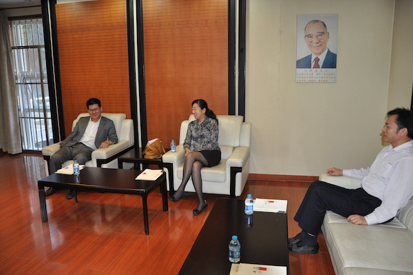 △图为院长助理、高级培训中心主任刘辉与钱岩、周建兵进行交流