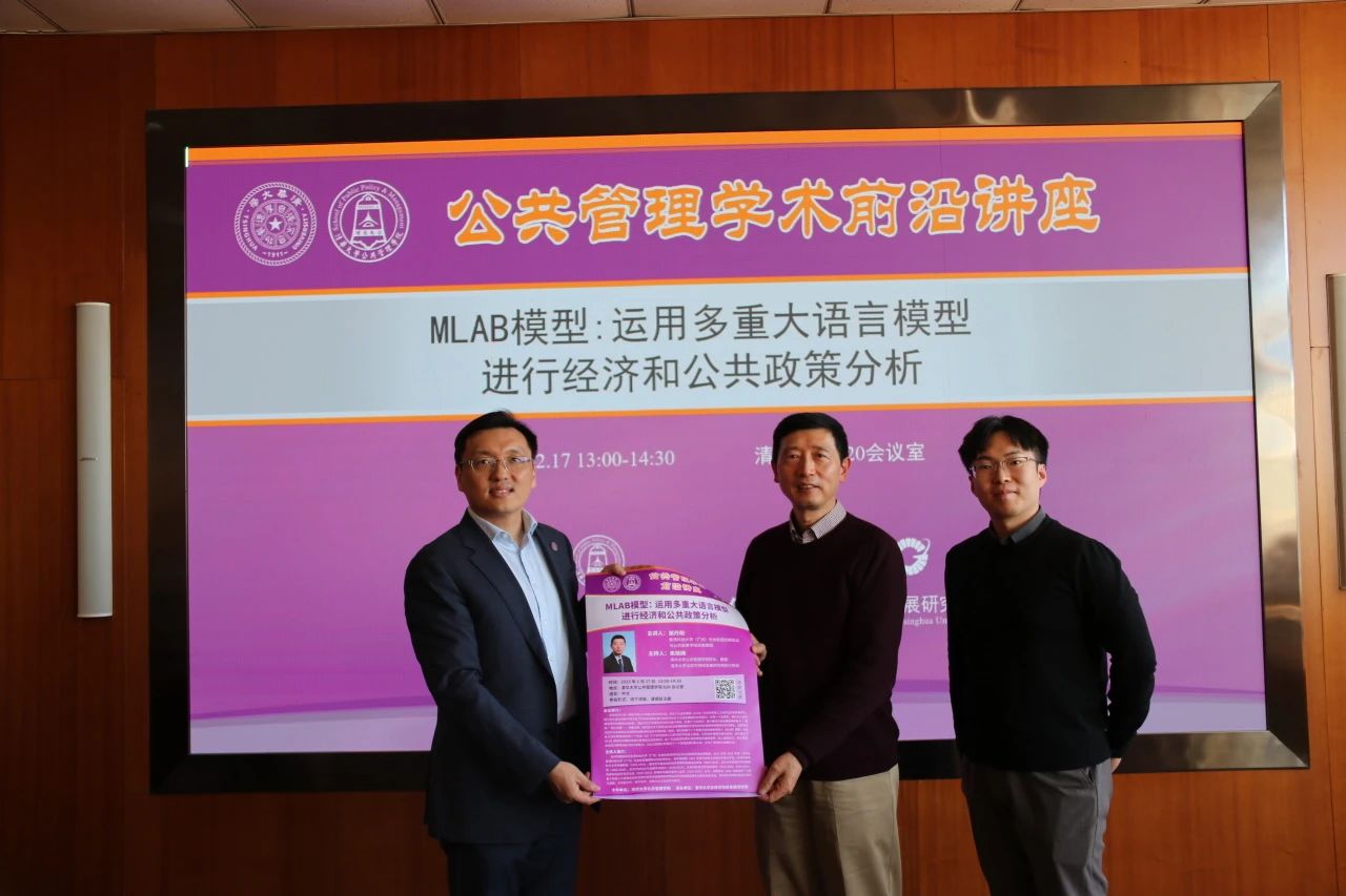 2月17日,由清华大学公共管理学院主办,清华大学全球可持续发展研究院承办的公共管理学术前沿讲座第77期成功举办。香港科技大学(广州)社会枢纽创新创业与公共政策学域的讲席教授谢丹阳以“MLAB模型:运用多重大语言模型进行经济和公共政策分析”为题作专题讲座。讲座由清华大学公共管理学院院长、清华大学全球可持续发展研究院执行院长朱旭峰教授主持。中国管理科学学会可持续发展管理专业委员会副主任兼秘书长马翔宇,清华公管学院老师陈玲、朱俊明、高宇宁、钟玮、戴亦欣、张鹏龙、魏文池、高雨辰、王盈盈,香港科技大学博士生郝俞植以及来自学院内外师生共计七十余人参加了本次讲座。