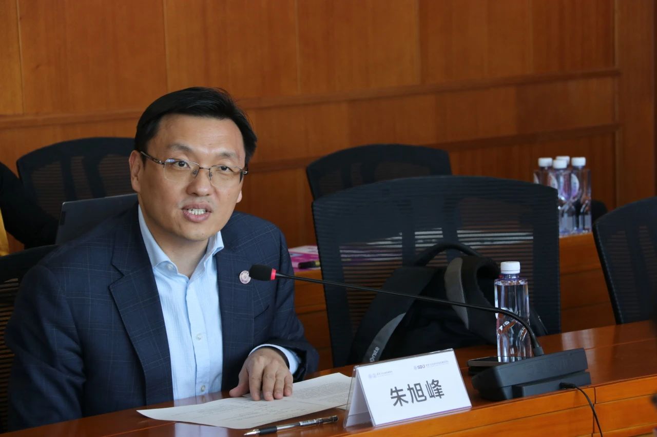 朱旭峰(左)与谢丹阳(中),郝俞植(右)合影并赠送海报