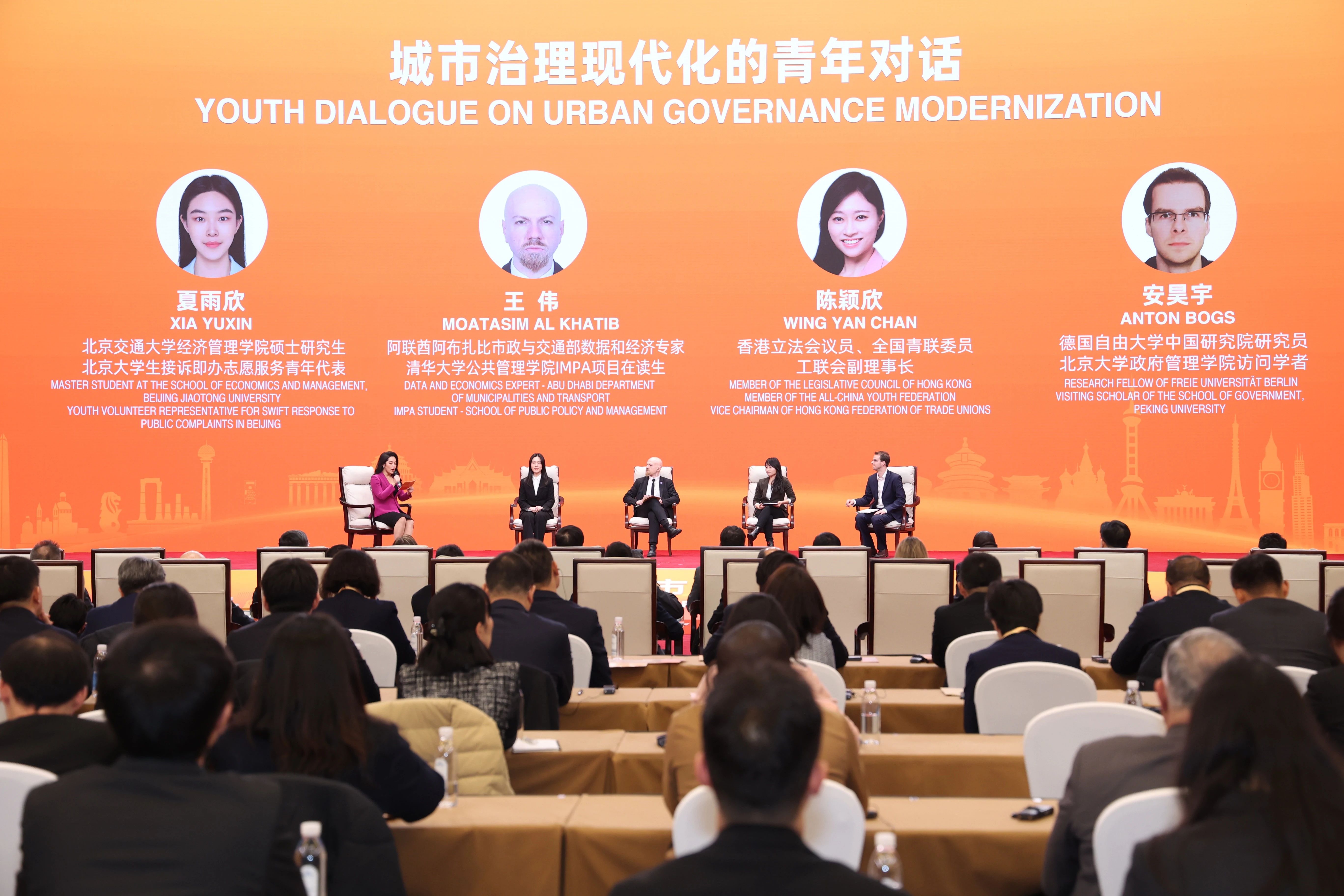同时,在闭幕式“城市治理现代化的青年对话”环节,公管学院国际公共管理硕士(IMPA)项目学生王伟(Moatasim Al Khatib,约旦籍)作为代表参加讨论。