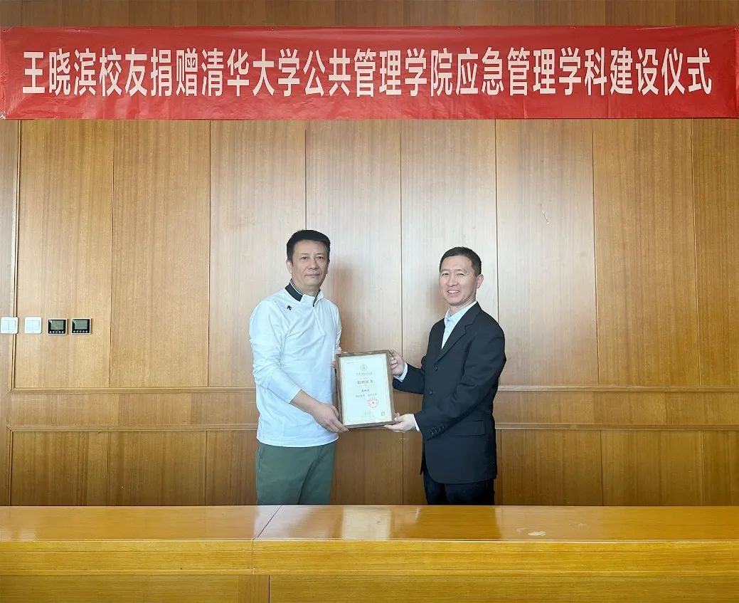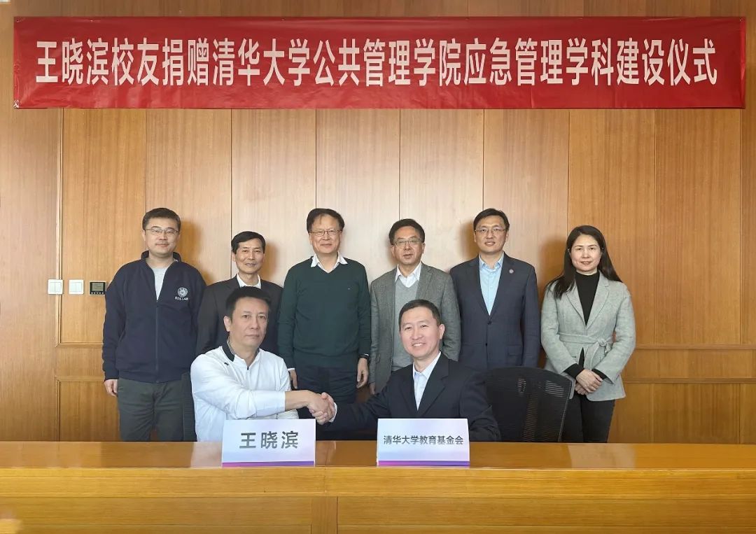 2024年12月23日,王晓滨校友支持应急管理学科建设捐赠仪式在清华大学公共管理学院(以下简称“公管学院”)举办。北京旻泰安全科技服务有限公司董事长、1988级校友王晓滨,清华大学文科资深教授、公管学院学术委员会主任薛澜,清华大学教育基金会副秘书长段江飞,公管学院党委书记彭宗超、院长朱旭峰,清华大学智库中心主任苏竣、安全科学学院院长袁宏永、公管学院发展办副主任林萍等出席仪式。彭宗超主持捐赠仪式。