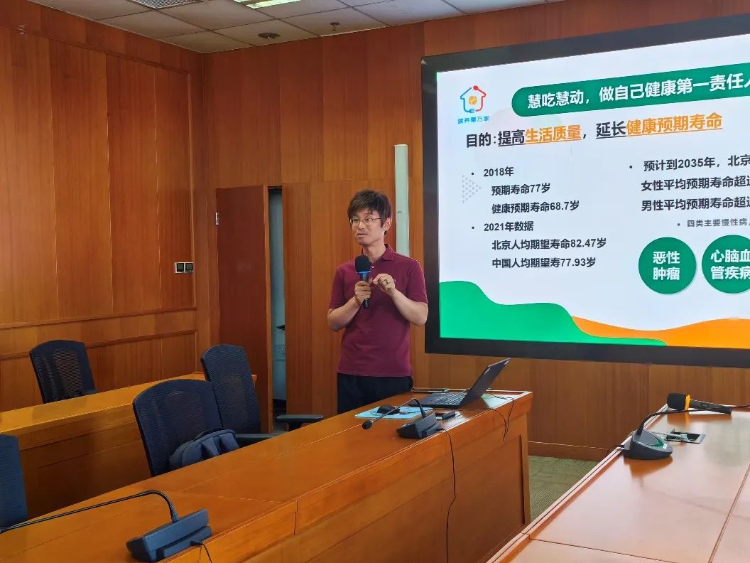 讲座邀请中国疾病预防控制中心营养与健康所研究员徐维盛做报告。徐维盛深入浅出地揭示了“膳食宝塔”背后的科学原理,让复杂的营养学知识变得通俗易懂。同时,他还结合日常生活实例,详细阐述了如何智慧地选择新鲜蔬果,以及如何通过合理搭配膳食来改善健康状况,提供了实用且可行的健康饮食指南。在互动环节,他解答了大家关于膳食营养方面的疑问。