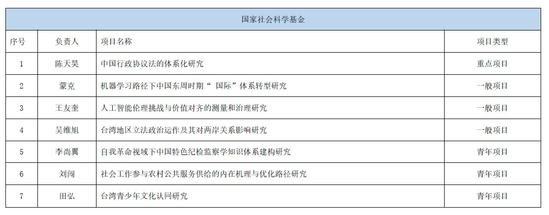 近期,国家自然科学基金委员会、全国哲学社会科学工作办公室陆续公示了2024年国家自然科学基金项目与国家社会科学基金项目的资助名单。我院共12个项目获批国家自然科学基金项目立项,7个项目入选国家社会科学基金年度项目立项公示名单。