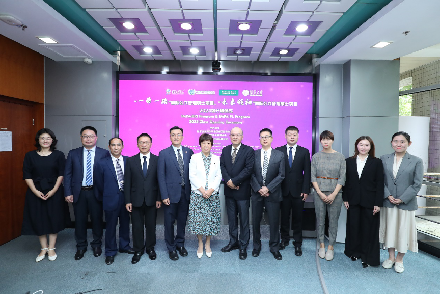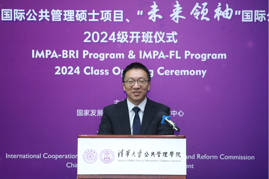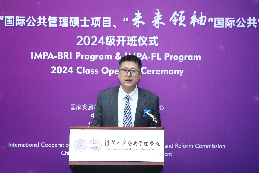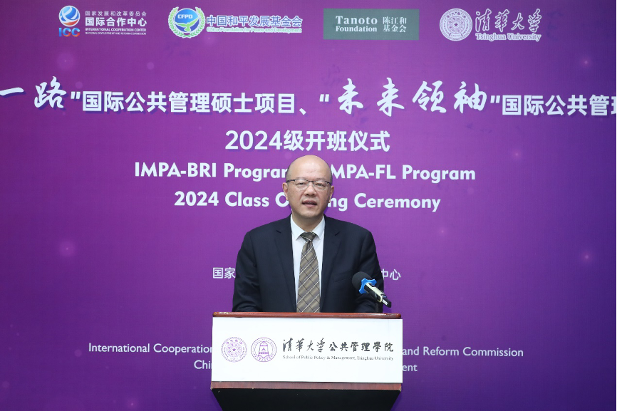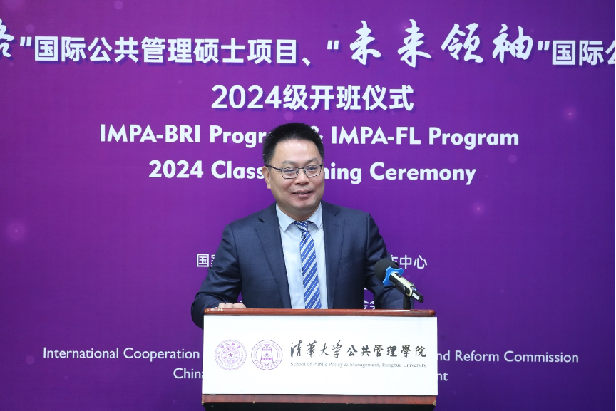 2024年9月4日上午,清华大学“一带一路”国际公共管理硕士项目(IMPA-BRI)和“未来领袖”国际公共管理硕士项目(IMPA-FL)2024级开班仪式在清华大学公共管理学院(以下简称:清华公管学院)举行。国家发展和改革委员会国际合作中心副主任邱爱军、中国和平发展基金会副秘书长刘振中、北京陈江和公益基金会秘书长伍伟以及来自三个主办单位的代表现场出席。清华公管学院院长朱旭峰、副院长殷成志、国际项目高级主任郭新宁、IMPA项目学术主任郑振清等代表承办单位出席活动。同时,来自两个项目的17名新生参加了此次活动。开班仪式由清华公管学院副院长殷成志主持。