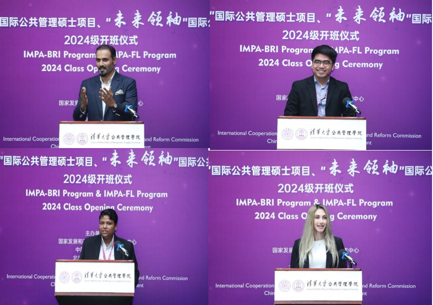 活动最后,四名学生代表发表感言,他们分别是:IMPA-BRI项目巴基斯坦籍学生阿里阿巴斯(Ali Abbas)、IMPA-FL项目尼泊尔籍学生毕马拉(Bimala B K)、IMPA-FL项目印尼籍学生穆熙(Muhammad Hasimhabibil Mustofa)、IMPA-BRI项目亚美尼亚籍学生马骞(Sirarpi Nikoghosyan)。同学们纷纷表达了对国家发展和改革委员会国际合作中心、中国和平发展基金会、北京陈江和公益基金会以及清华公管学院的由衷感谢,并坚定表示一定会珍惜在清华学习的宝贵机会,日后会将在中国的所学所悟带回本国,积极推动社会变革,为促进全球共同发展贡献力量!