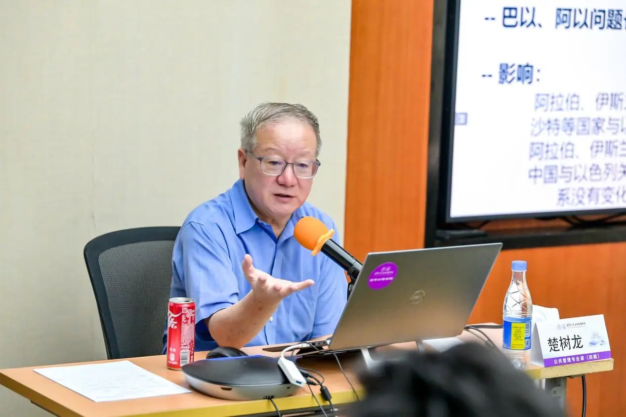 18日下午,清华大学公共管理学院教授楚树龙老师为学员讲授“国际关系与中国外交”。楚老师从二十大对国际关系和国际形势的判断、国际政治格局的趋势切入,就巴以冲突、俄乌冲突、国际政治经济发展对中国的影响、中美关系、中国与其他国家地区关系及政策等当前国际关系领域的重要问题,为学员带来精彩的授课。