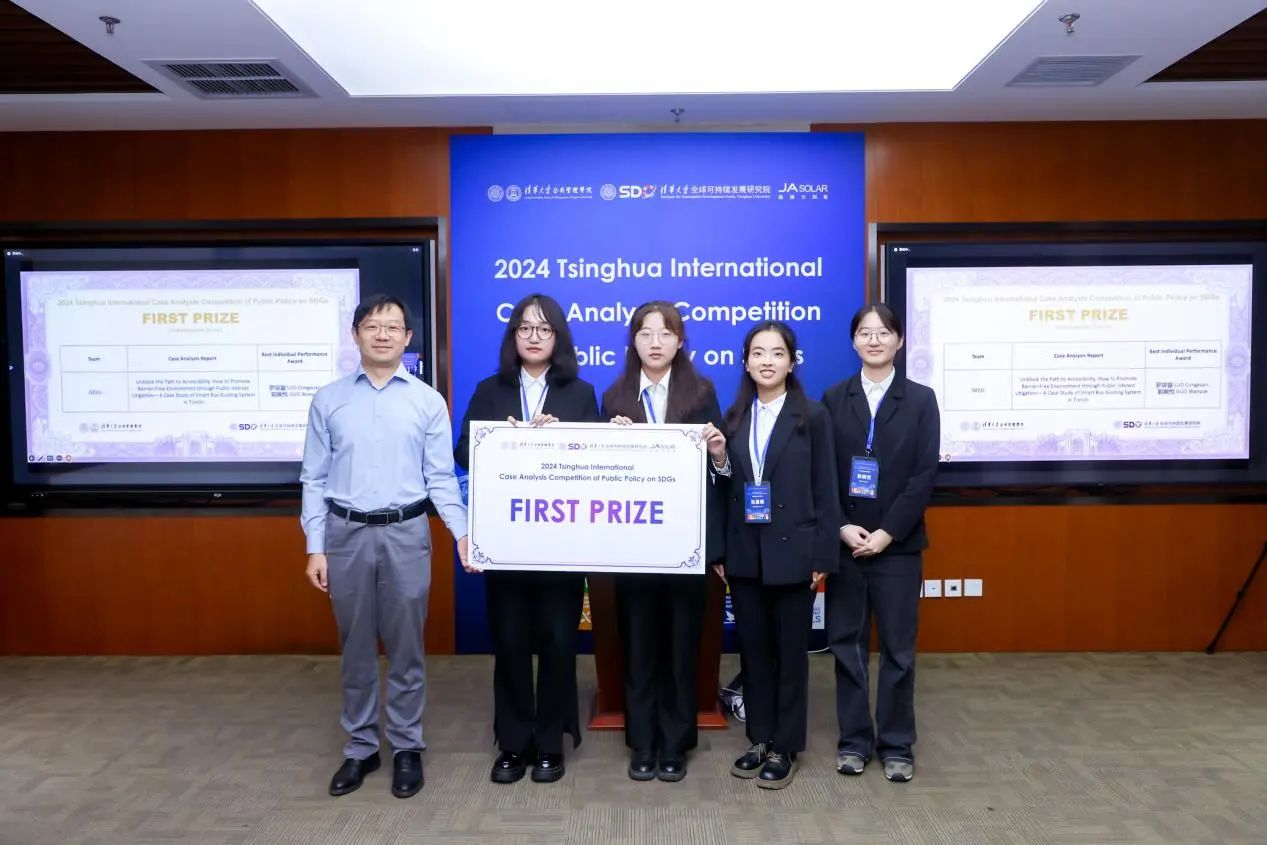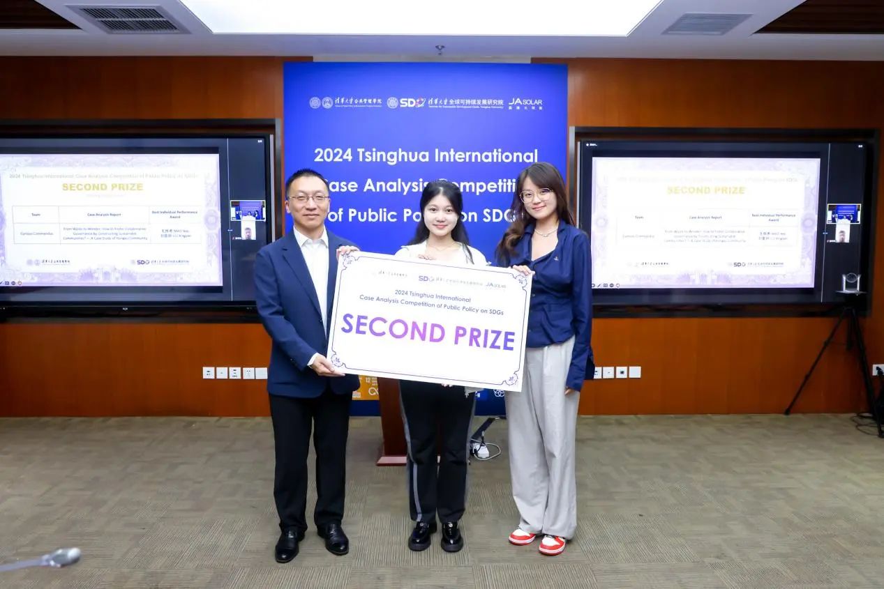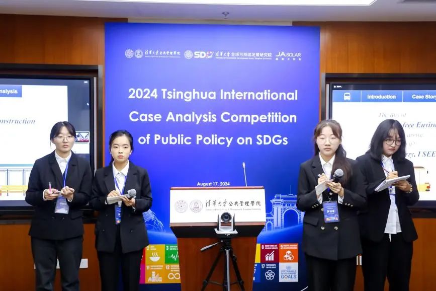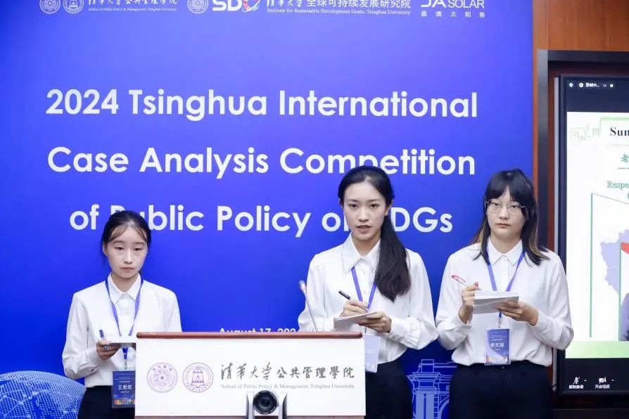 8月17日,2024年清华大学全球可持续发展目标公共政策案例分析大赛(2024 Tsinghua International Case Analysis Competition of Public Policy on SDGs)决赛在清华大学公共管理学院举行,同时有部分选手在线上参与了比赛。大赛由清华大学公共管理学院中国公共管理案例中心和清华大学全球可持续发展研究院联合主办,获得了晶澳太阳能科技股份有限公司的核心支持。
