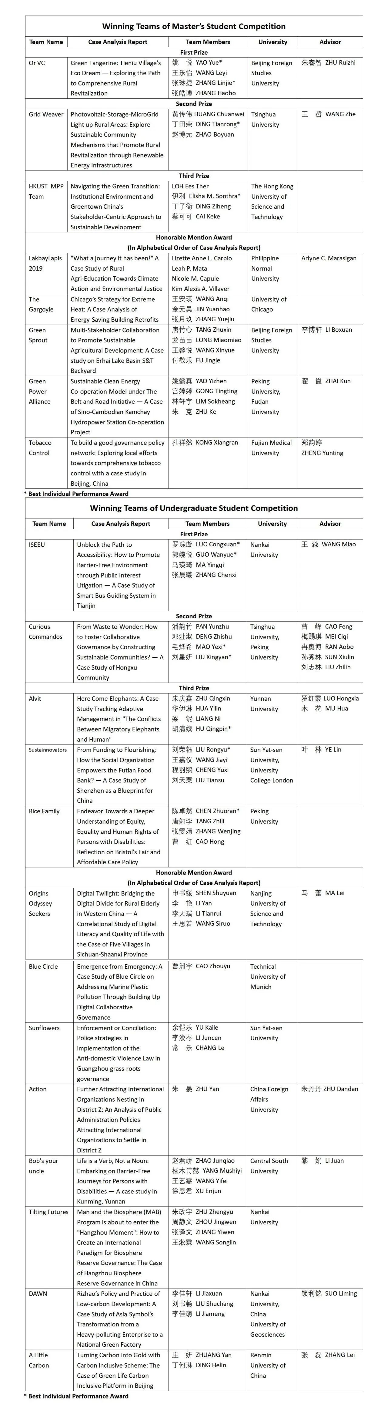 大赛自今年5月启动以来,吸引了来自中国、美国、英国、德国、菲律宾的20所院校40支团队共100名学生参与。参赛团队围绕17项联合国可持续发展目标进行选题,从公共政策专业角度剖析可持续发展案例,开展实地调研并精心撰写案例分析报告。经过四个多月的认真准备和两轮专业评选,共有13支本科生队伍和8支硕士生队伍脱颖而出、进入决赛。