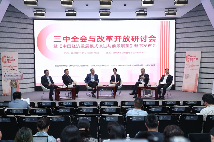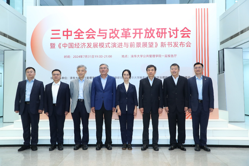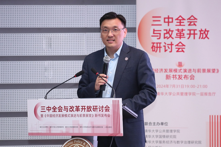 7月31日晚,三中全会与改革开放研讨会暨《中国经济发展模式演进与前景展望》新书发布会在清华大学公共管理学院报告厅举行。会议由清华大学公共管理学院、清华大学国情研究院、清华大学服务经济与数字治理研究院和人民出版社联合主办,光明网进行了全程网络直播。会议由清华大学公共管理学院教授、清华大学国情研究院副院长周绍杰主持。