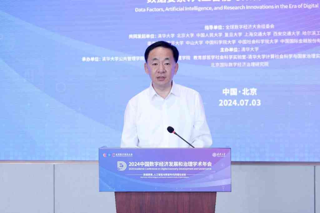 7月3日,2024中国数字经济发展和治理学术年会在清华大学举行。本届学术年会聚焦“数据要素、人工智能与数智时代的理论创新”,邀请国内外40余位专家、学者及机构代表进行主旨演讲和交流。教育部党组成员、副部长吴岩,北京市委常委、副市长靳伟,清华大学校长李路明,学术年会主席团主席、国务院原副秘书长江小涓出席开幕式并致辞。