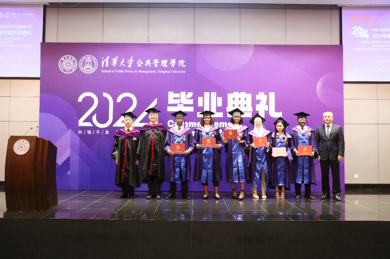 6月30日下午,商务部国际商务官员研修学院副院长徐凯、项目管理二处副处长黄乐遥应邀出席2024年清华大学公共管理学院毕业典礼,并为来自15个国家的20名商务部援外学历学位教育项目毕业生颁发商务部证书。