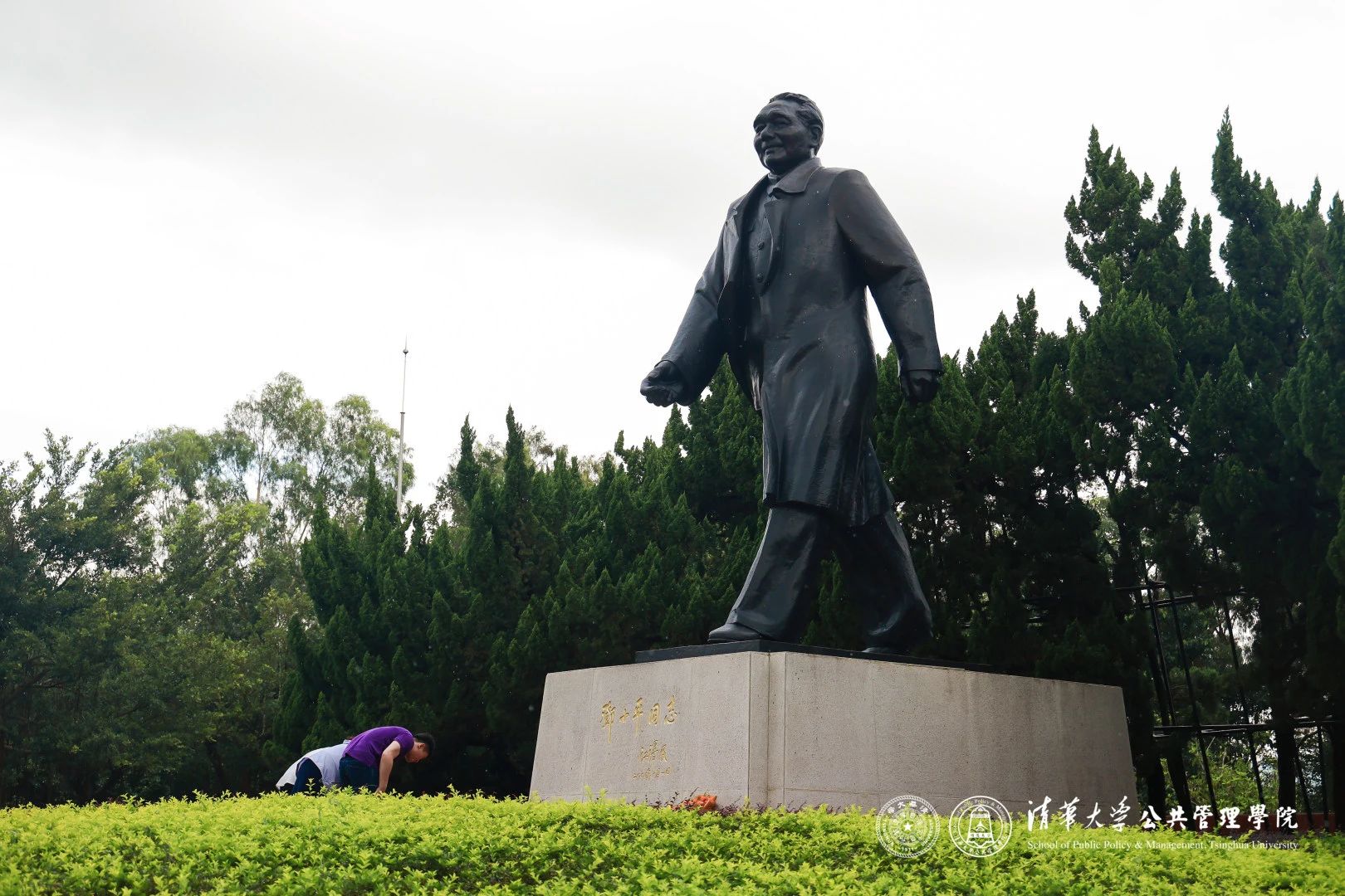 公园的山顶广场矗立着改革开放总设计师邓小平同志的铜像。这座高6米、重6吨的铜像,展现了邓小平同志意气风发、昂首阔步的英姿,也蕴含着开拓创新、敢为人先的精神。学员们在铜像前肃立,学员代表献上鲜花,大家向铜像鞠躬,表达对邓小平同志的敬仰与怀念之情。