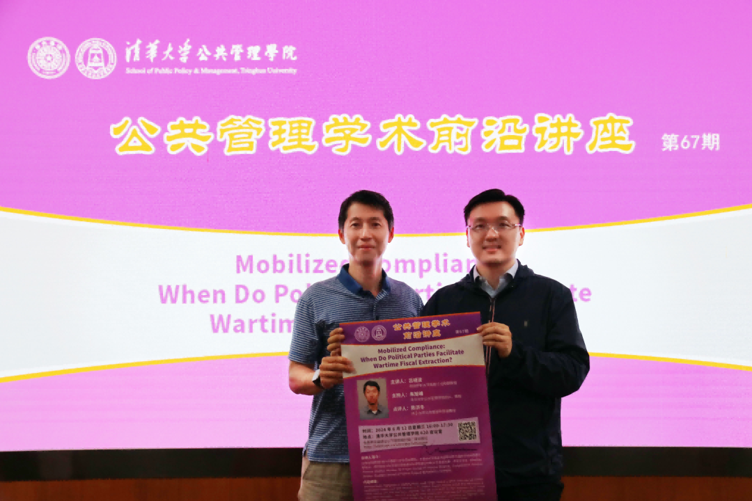 6月12日,由清华大学公共管理学院主办的第67期公共管理学术前沿讲座在620会议室举行。德克萨斯大学奥斯汀分校吕晓波副教授以“Mobilized Compliance:When Do Political Parties Facilitate Wartime Fiscal Extraction?”为题做专题演讲。讲座由清华大学公共管理学院院长朱旭峰主持,清华大学公共管理学院副教授陈济冬担任点评嘉宾。清华大学公共管理学院副院长朱俊明,教授陈玲,副教授陈思丞、蒙克、魏文池、杨竺松、赵静;清华大学社会科学学院副院长孟天广,教授苏毓淞、刘军强;北京大学公共管理学院助理教授杨文辉,以及学院硕士、博士研究生近三十余人参加了本次讲座。