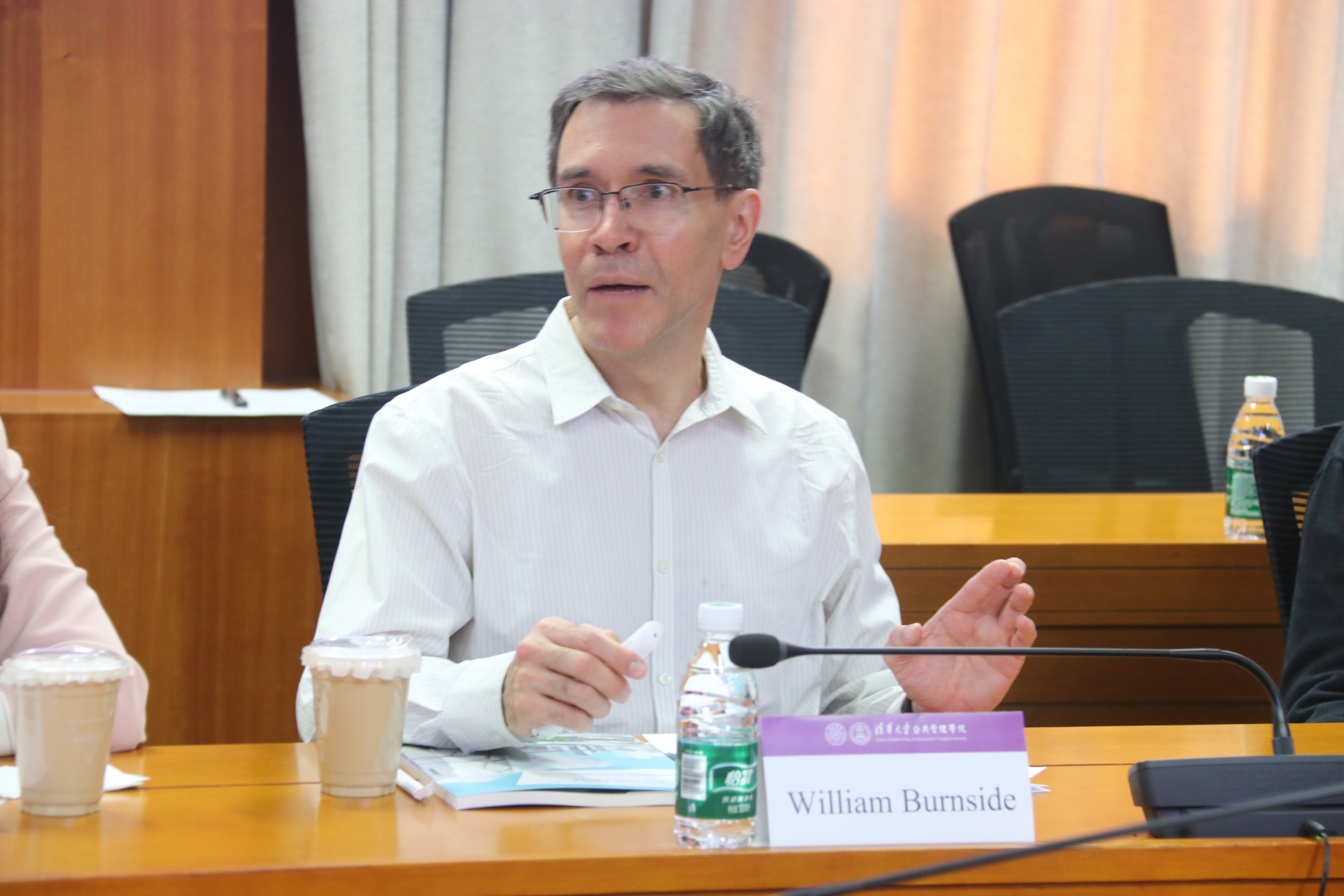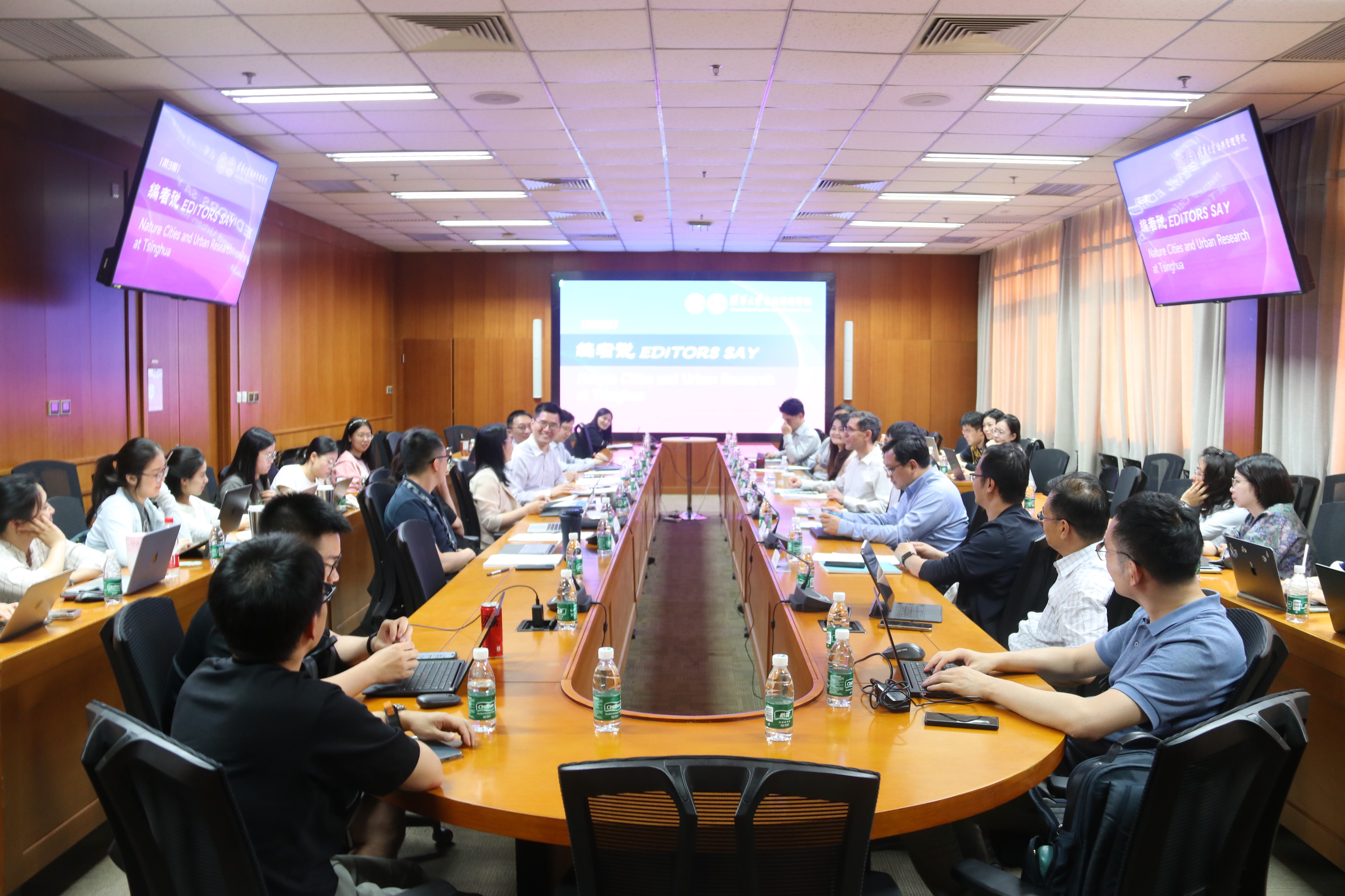 5月21日,“编者说”第3期在清华大学公共管理学院620举行。Nature Cities主编William Burnside,副主编陈炜;清华大学公共管理学院副院长殷成志、朱俊明,教授陈玲、刘志林,副教授高宇宁,助理教授龚璞;清华大学建筑学院教授王辉、武廷海、燕达,助理教授来源,清华大学中国新型城镇化研究院副研究员李栋,以及公管学院智库和师生代表40余人参加了会议。会议由朱俊明主持。