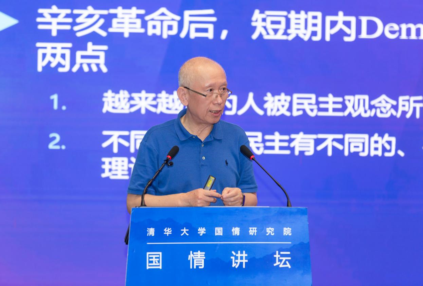 5月15日晚,清华大学国情研究院“国情讲坛”第61讲在清华大学公共管理学院报告厅举行。香港中文大学荣休讲座教授王绍光发表了题为“从‘民主’到‘人民民主’:概念生成轨迹与理论发展脉络(1820-1949)”的演讲。本期讲坛由清华大学国情研究院、清华大学国家治理与全球治理研究院共同举办。清华大学文科资深教授,清华大学公共管理学院教授、博士生导师,清华大学国情研究院院长,清华大学国家治理与全球治理研究院首席专家胡鞍钢,清华大学公共管理学院教授崔之元出席讲坛并作点评。清华大学公共管理学院教授、党委副书记,清华大学国情研究院副院长周绍杰主持讲坛。光明网提供全程网络直播。