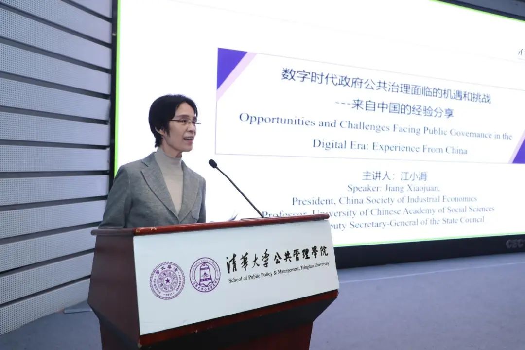 第一场主旨报告,中国工业经济学会会长、中国社科院大学教授、国务院前副秘书长江小涓和匹兹堡大学教授Guy Peters分别做主旨发言。江小涓教授以“数字时代公共治理面临的机遇和挑战”为题,深入剖析了中国在数字技术领域的发展现状、政策导向以及面临的挑战,提出政府需要在现有技术应用格局的基础上进一步作为,以实现发展与效率的平衡。Guy Peters教授以Two and one-half Cheers for Technological Change in Policy(技术变迁与公共政策的机遇与反思)为题,线上分享了全球范围内AI和大数据技术在治理领域的最新应用和发展趋势,提示学界在充分利用技术促进政府效率的同时也应对技术监管和伦理考量给予高度关注。