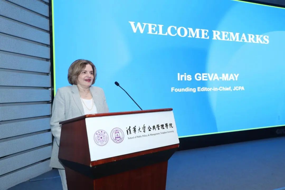 《比较政策分析期刊》创刊主编、清华大学公共管理学院杰出访问教授Iris Geva-May代表JCPA致欢迎辞,对清华大学的长期支持表示感谢,并表示清华大学是享誉世界的顶尖大学,期刊得以落户清华大学也体现了JCPA全体编委对清华公管学术水平与国际影响力的认可,期待未来JCPA能在清华大学的有力推动下不断扩大影响力、为学界贡献更多知识探索。
