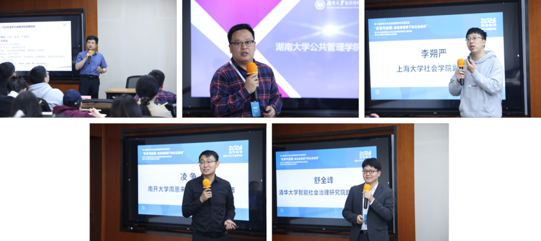 本届论坛设置了学术生涯发展交流午餐会环节。会议邀请了对外经济贸易大学政府管理学院讲师甘甜、湖南大学公共管理学院副教授谷浩、上海大学社会学院副教授李朔严、南开大学周恩来政府管理学院讲师凌争、清华大学智能社会治理研究院助理研究员舒全峰分享学术生涯发展心得。交流会由清华大学公共管理学院党委副书记周绍杰教授主持。