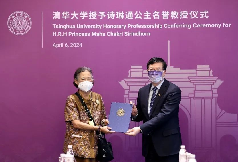在清华大学授予诗琳通公主名誉教授仪式上,邱勇为诗琳通公主颁发了名誉教授聘书。鉴于诗琳通公主在学术和教育方面取得的成就,特别是对两国教育、文化和经济合作作出的重要贡献,清华大学决定授予诗琳通公主名誉教授学衔。清华大学副校长王宏伟宣读了学校的决定。