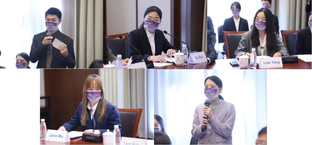 学生代表张文喆、苏蕊、廖洋、吴家铃(Jarin Wu)、管柔端(Chayanis Sutcharitchan)进行分享(从左至右,从上至下)