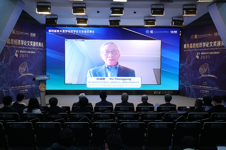 斯坦福中国经济与制度中心资深研究员、美国科斯研究所理事、青木奖评审委员许成钢教授在线上进行了发言。许成钢教授回顾了经济学的发展,概要地讨论了经济科学、社会科学方法论最基本的问题,同时对获奖者表述祝贺,并对青年学者提出了深切期望。