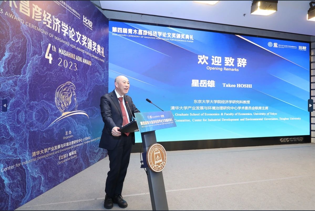 东京大学大学院经济学研究科、CIDEG学术委员会联席主席、青木昌彦经济学论文奖评审委员星岳雄教授为颁奖典礼致开幕辞。星岳雄教授提到青木昌彦教授在经济学领域有着显著贡献,特别是在比较经济分析方面。青木昌彦经济学论文奖旨在鼓励中国青年学者进行公共政策研究和中国机构发展相关研究。星岳雄教授强调,青木昌彦教授的研究不仅推动了经济学理论的发展,也为我们提供了理解和比较不同经济体,如日本、中国和美国的重要工具。他指出,尽管各经济体存在显著差异,但在当前世界分化的趋势下,理解这些差异仍然至关重要。星岳雄教授呼吁所有学者继续进行重要的经济对比分析,以更好地理解表面上看起来截然不同的经济体,并为世界的共同繁荣与发展做出贡献。