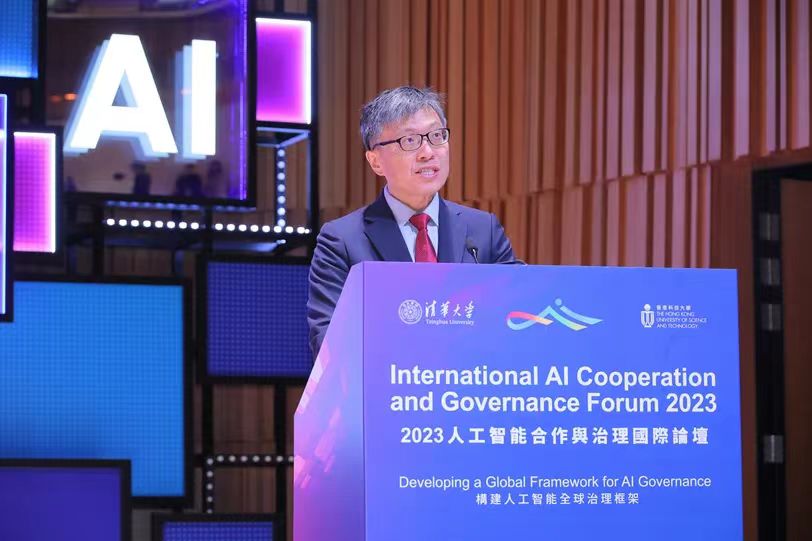 2023年12月8日,由清华大学、香港科技大学联合主办的2023人工智能合作与治理国际论坛在香港科技大学逸夫演艺中心开幕。本次论坛以“构建人工智能全球治理框架”为主题,汇聚来自全球人工智能领域的顶级专家学者、政府代表、国际组织和企业人士,就应对生成式人工智能等前沿技术挑战,探索制定人工智能全球治理框架,助力构建以人为本、包容、和谐、可持续的世界展开研讨。