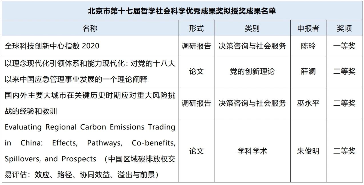 12月8日,北京市哲学社会科学优秀成果奖评奖委员会办公室公示了北京市第十七届哲学社会科学优秀成果奖拟授奖成果名单,我院4项成果入选。具体如下:
