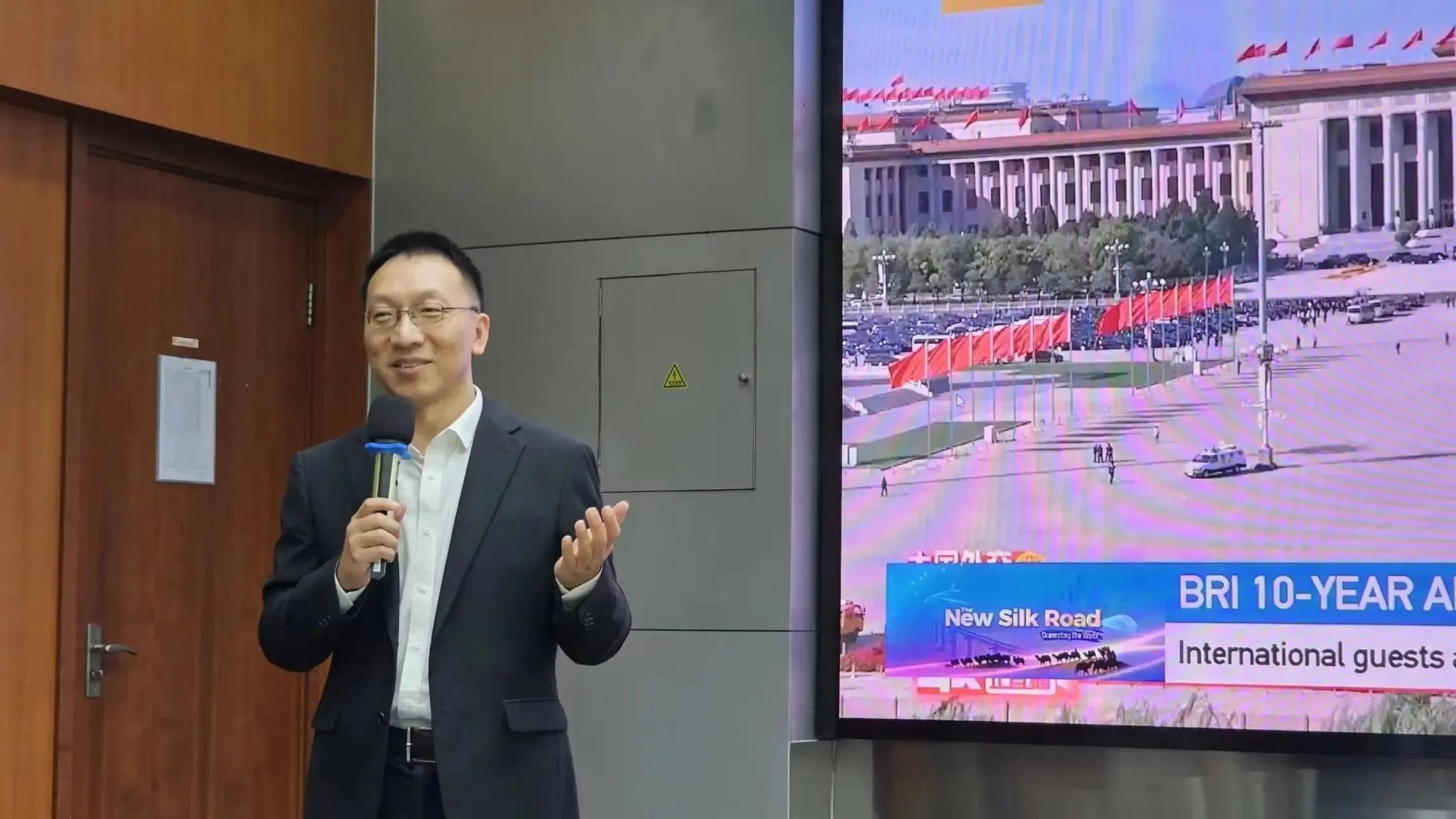 朱旭峰在发言中介绍,今年是习近平主席提出共建“一带一路”倡议十周年。“一带一路”国际合作从无到有,蓬勃发展,取得了丰硕成果。希望同学们能够以和平合作、开放包容、互学互鉴、互利共赢的丝路精神指导学习和未来工作,为“一带一路”的下一个十年建设贡献力量。