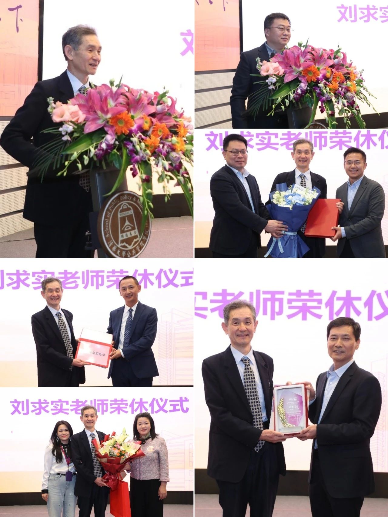 本次活动同步举办了清华大学公共管理学院副教授刘求实的荣休仪式。刘求实自1996年进入清华大学工作以来,躬耕讲台27载,深受同事信任和学生爱戴。刘求实是清华大学NGO研究中心的创始成员之一,执教期间培养了大量非营利和公益慈善领域的优秀人才,为清华NGO研究的繁荣与发展做出了重要贡献。清华大学公共管理学院党委副书记周绍杰主持本环节,学院党委书记彭宗超代表学院为刘求实老师颁发纪念品,学院社会组织与社会治理研究所所长蒙克、党支部书记郑振清代表全所师生向刘求实老师赠送纪念品,院友代表杨明为刘求实老师颁发益壮荣休金。