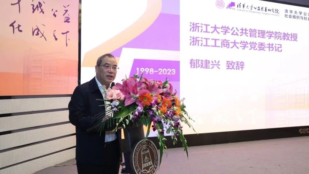 浙江大学公共管理学院教授、浙江工商大学党委书记郁建兴在致辞中强调了清华NGO研究在公益慈善领域的卓越贡献。他指出,在当前全面建设社会主义现代化国家的关键时期,公益慈善研究对第三次分配等事关社会保障体系全面建设、推动共同富裕发展具有重大意义。郁建兴表示,以清华NGO研究25周年纪念活动为契机,学界同仁应就公益慈善的教育和研究工作进行更广泛的交流,继续扩大公益慈善人才建设,共同推动中国特色公益慈善事业发展。