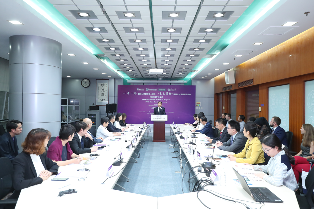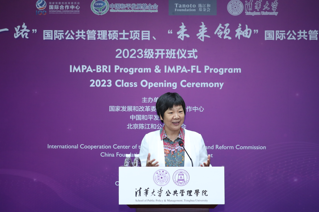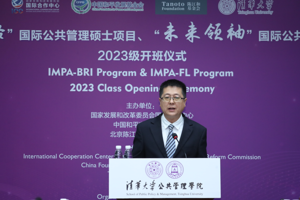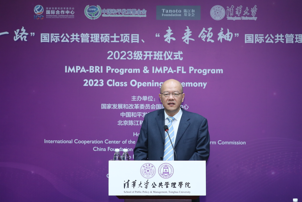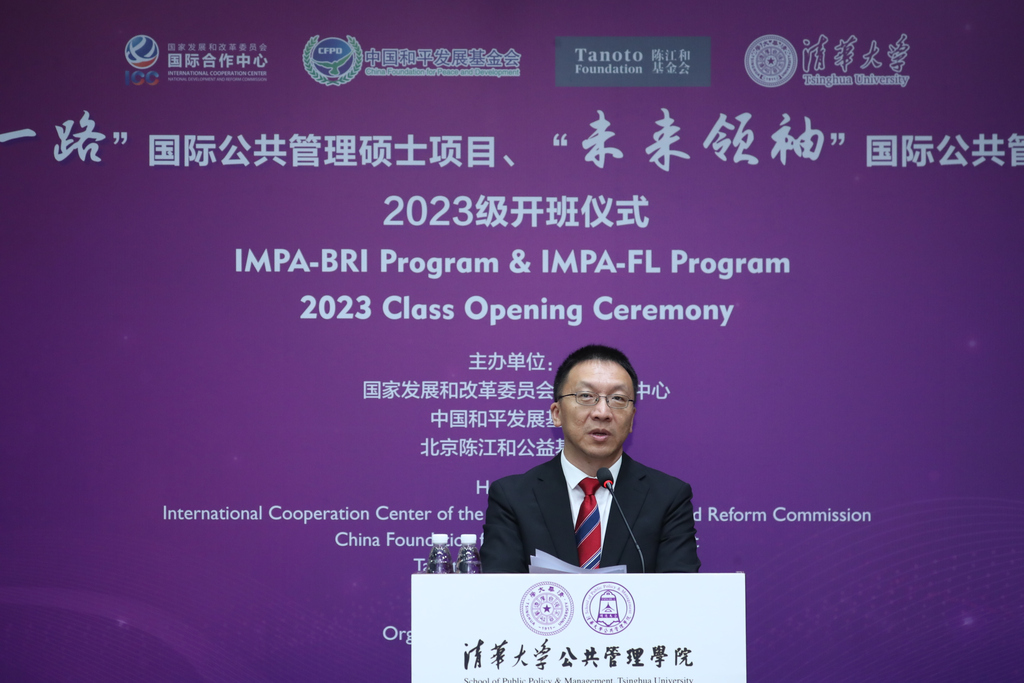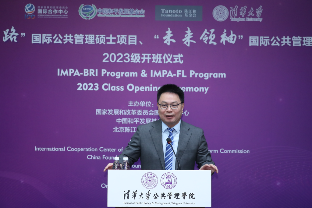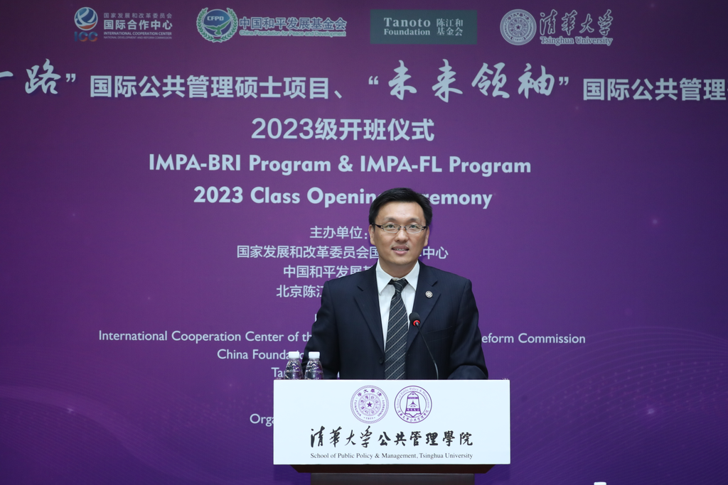 2023年9月19日下午,清华大学“一带一路”国际公共管理硕士项目(IMPA-BRI)和“未来领袖”国际公共管理硕士项目(IMPA-FL)2023级开班仪式在清华大学公共管理学院(以下简称:清华公管学院)成功举办。国家发展和改革委员会国际合作中心副主任邱爱军、中国和平发展基金会副秘书长刘振中、北京陈江和公益基金会秘书长伍伟以及来自三个主办单位的代表现场出席。清华公管学院院长朱旭峰、副院长殷成志、国际项目高级主任郭新宁、IMPA项目学术主任郑振清等代表承办单位出席活动。同时,来自两个项目的近20名新生参加了此次活动。开班仪式由清华公管学院副院长殷成志主持。