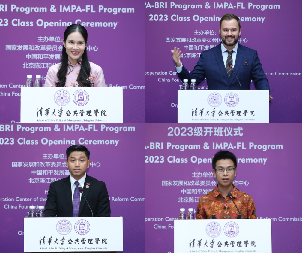活动最后,四名学生代表发表感言,他们分别是:IMPA-FL项目越南籍学员吴嘉婉(Gia Uyen Ngo)、IMPA-FL项目俄罗斯籍学员阿奇(Artemiy Yarchevskiy)、IMPA-FL项目柬埔寨籍学员曾宪隆(Chang Heanglong)、IMPA-BRI项目印度尼西亚籍学员郭光荣(Bryan Raharja Djaja)。同学们纷纷表达了对国家发展和改革委员会国际合作中心、中国和平发展基金会、北京陈江和公益基金会以及清华公管学院的由衷感谢,并坚定表示将会肩负起时代的使命,为人类共同发展、社会共同进步、建设更加光明的未来而努力奋斗!