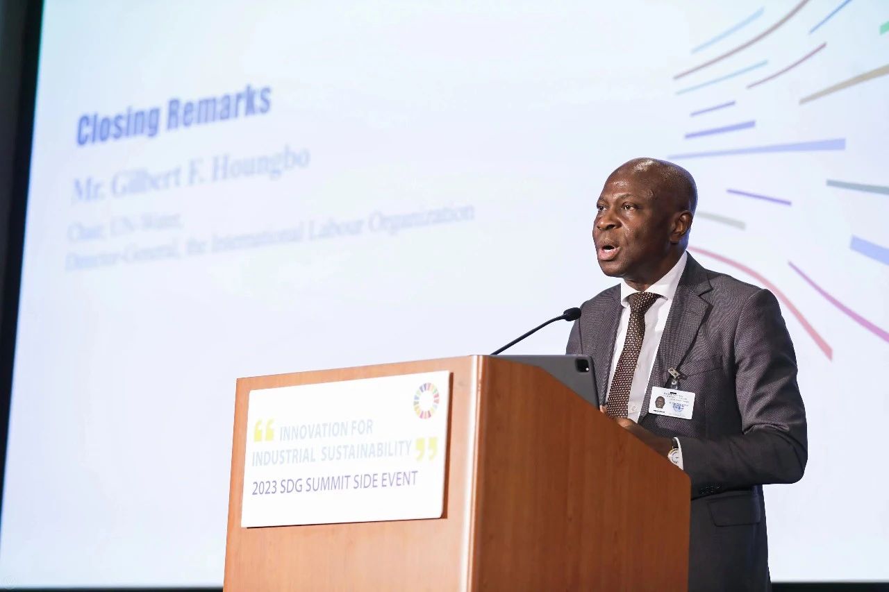 联合国水机制主席、国际劳工组织总干事吉尔贝•福松•洪博 (Gilbert F. Houngbo)发言