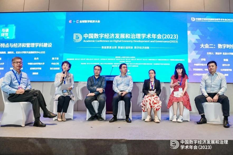 在后续的与谈环节,北京大学国家发展研究院教授、副院长,北京大学数字金融研究中心主任黄益平主持,中国科学院大学经济与管理学院乔晗教授、清华大学公共管理学院张楠教授、中国人民大学商学院副院长张瑾副教授、北京大学国家发展研究院张俊妮副教授、中国社会科学院大学应用经济学院朱丹副教授、中金公司执行总经理周子彭等围绕“数字时代带来了什么样的挑战、应当如何应对?”“在管理和经济学科建设方面可以做怎样的努力”等热点问题,进行了跨学科的热烈讨论。