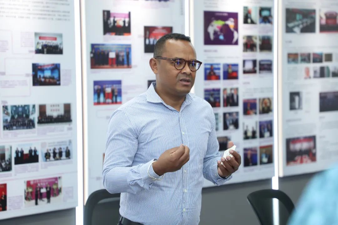 彭宗超首先对来访的西拉外长及代表团成员表示了热烈的欢迎,并向学院优秀院友塔赞秘书长致以亲切的问候。他指出,能够在中国共产党建党102周年纪念日这一特殊日子里接待马方代表团并与久违的优秀院友相聚,感到十分荣幸和高兴。深化中非交流与合作是清华大学建设世界一流大学的一项重要目标,也是推动国际合作的重要途径。清华公管学院始终秉承这一指导思想,将服务国家战略和推动中非高等教育交流合作作为重要使命和任务。自2007年起开始设立国际项目以来,学院已先后开设了包括IMPA项目在内的多个特色项目,旨在为国际学生提供了解中国式现代化和中国发展实践的平台,服务全球发展。其中,已培养了8位来自马达加斯加外交部的优秀研究生。以此为契机,学院也期待未来能有更多来自马方公共部门的优秀人才来到清华公管学院交流学习,共同开启双方友谊的新篇章。
