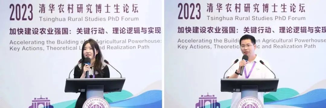 华南农业大学张轶之和清华大学张曾作为博士生代表发言。他们感谢清华农研院为青年研究者提供学习交流机会,并表示会积极投身“三农”问题研究,助力农业强国建设。