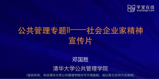 本课程是公共管理学科的前沿性课程。近年来,全球兴起了一股社会创新的浪潮,本课程通过系统介绍社会创新与社会企业家精神的基础理论、社会创新的发展阶段、工具方法、生态环境与实践知识,增进同学们对社会创新前沿领域的了解,拓展学生的视野和思维。同时,通过学习,让不同背景的学生更深入理解自己在社会创新中的角色。我们有理由相信,当今世界,人类所面临的社会问题能否得到有效解决,最关键的是人,是具有社会企业家精神的人。这就需要同学们掌握公共管理的新理论、新方法、新知识,培养自己的社会企业家精神。只有这样,我们生存的社会环境才会更美好,人类的福祉与文明才能不断提升。