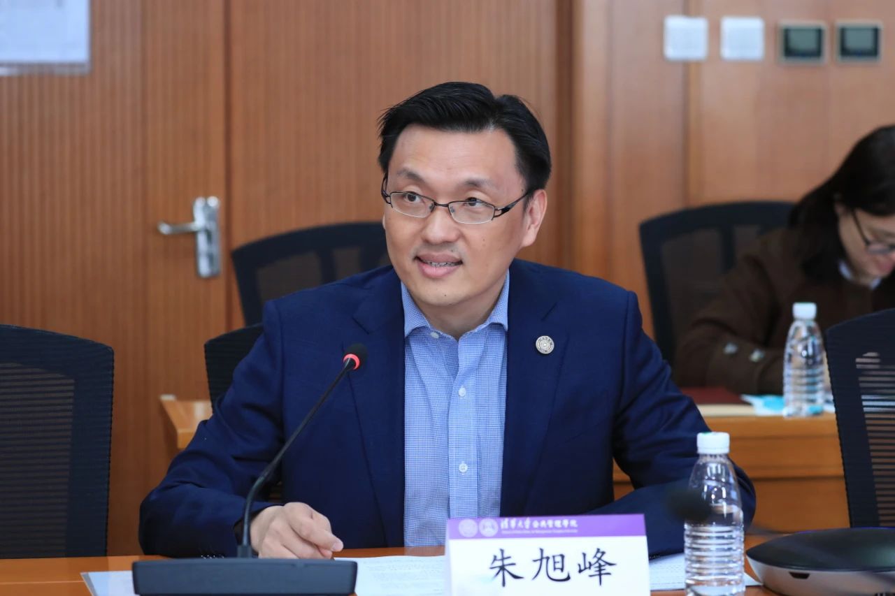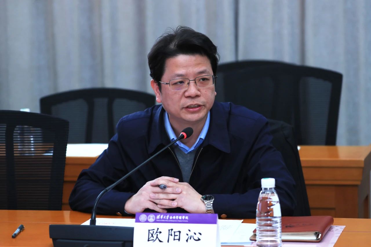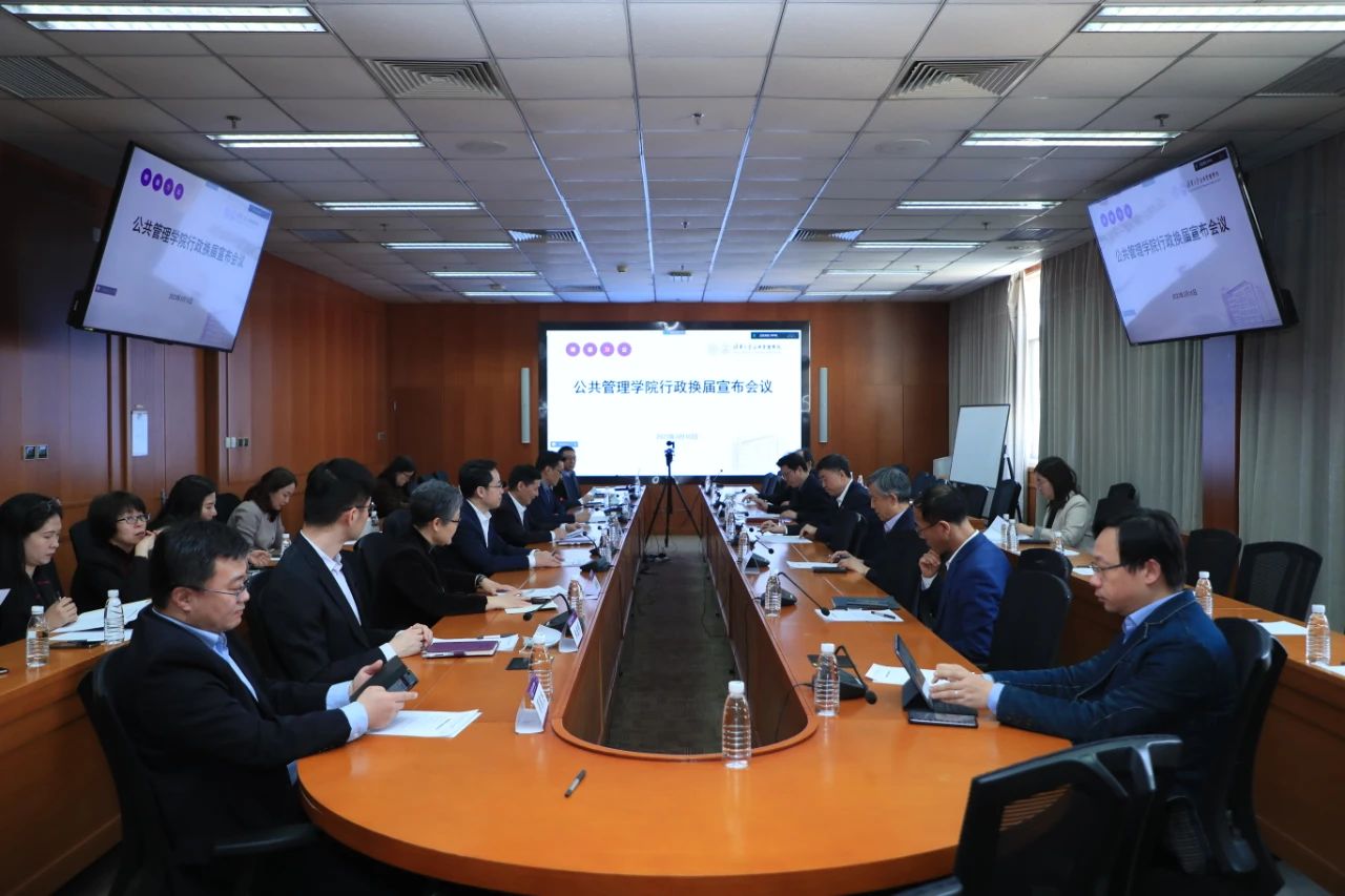 欧阳沁宣读校党委关于公共管理学院行政班子换届的决定。经第十五届党委第二十次常委会会议讨论通过,决定任命朱旭峰为公共管理学院院长,王亚华、谢矜、殷成志、朱俊明为公共管理学院副院长。