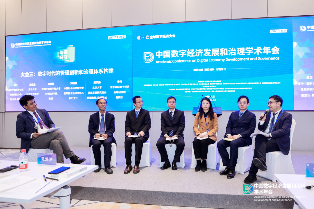 在后续的与谈环节,清华中国科学技术政策研究中心副主任梁正教授、清华大学经济管理学院周俊杰教授、中国社会科学院大学应用经济学院吉富星教授、中国社会科学院大学互联网法治研究中心执行主任刘晓春副教授、北京大学国家发展研究院助理院长席天扬长聘副教授、北京国际数字经济治理研究院李伟副院长围绕“数字经济背景下,科技、经济和法律等领域中的变与不变,以及管理创新和治理体系构建”等热点问题,进行了跨学科的热烈讨论。