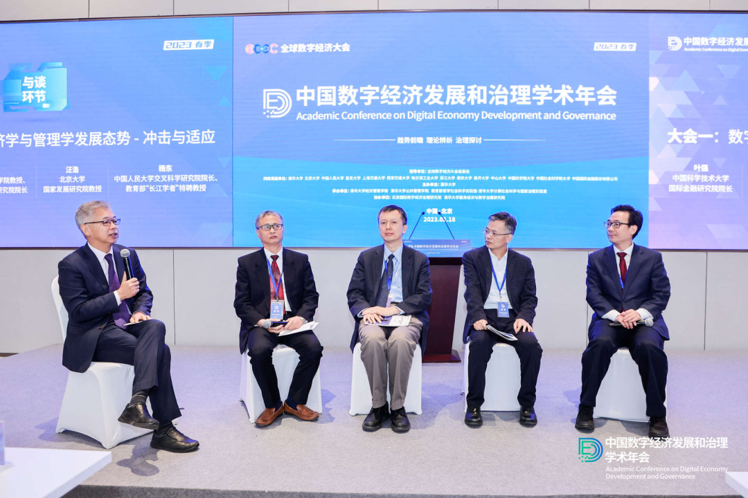 中国科学技术大学国际金融研究院院长叶强教授,清华大学社会科学学院教授、清华大学创新发展研究院院长刘涛雄教授,北京大学国家发展研究院汪浩教授,中国人民大学交叉科学研究院院长、教育部“长江学者”特聘教授杨东教授出席了大会一的与谈环节,对“传统产业和公共治理如何应对数字化变革,经济学和管理学如何适应数字经济时代”等问题各抒己见,进行了热烈讨论。