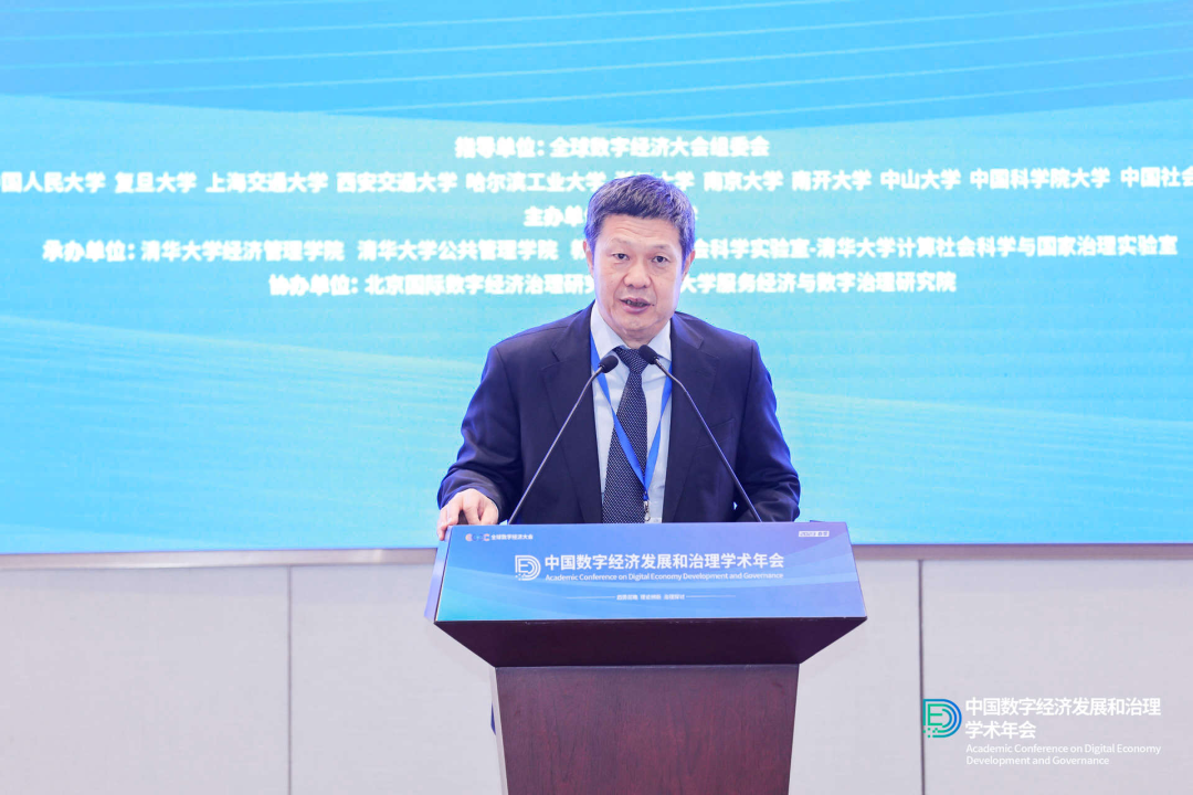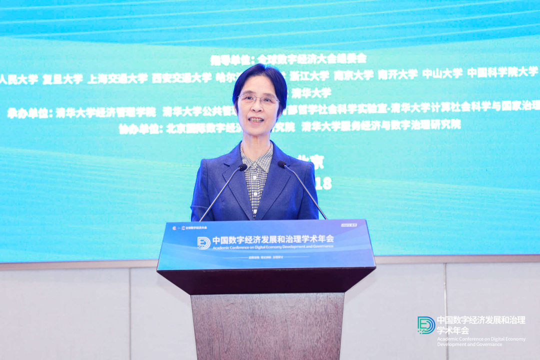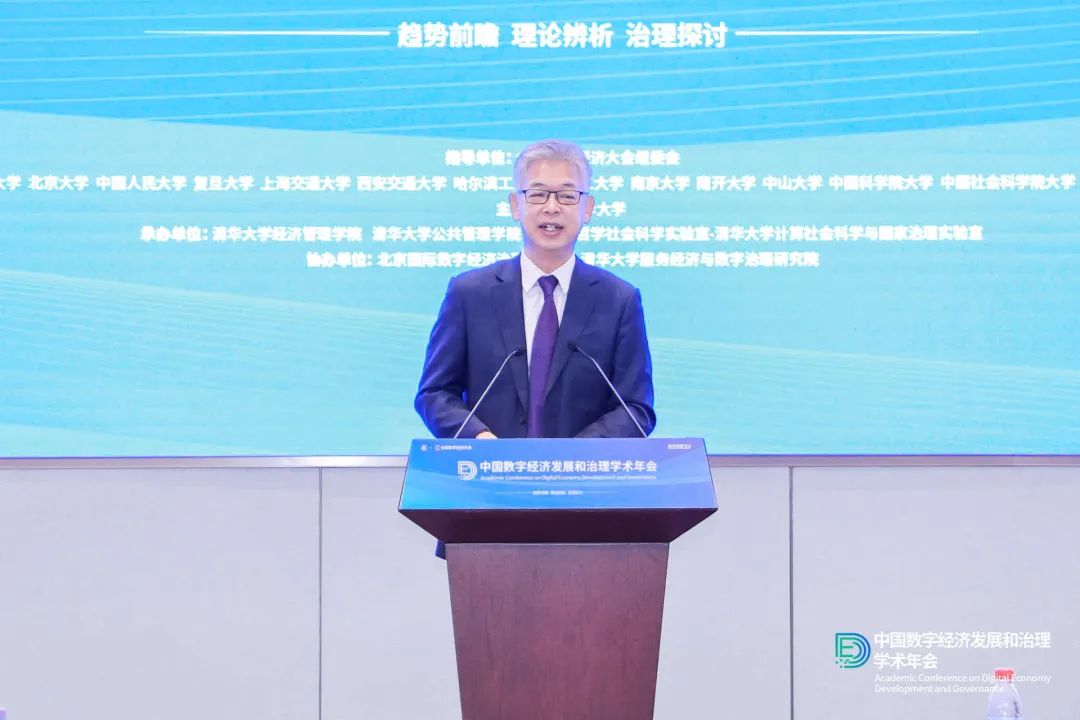 全国人大常委会委员、中国行政管理学会会长、中国数字经济发展和治理学术年会主席团主席江小涓教授以“数字时代的经济学和公共管理学科体系建设:几点思考”为题,分享了自身对数字领域教学实践、工作心得和研究体会的深刻思考。江小涓教授指出,数字技术已经广泛渗透到生产要素构成、资源配置方式、经济运行逻辑、政府治理模式等各个方面,数字经济和数字社会正在成为普遍和主体形态,显著影响了经济理论的底层结构、逻辑关系和主体问题。需要构建适应数字时代的学术体系和教学科研重点内容,需要社会各个方面更加知情和更加广泛地参与到相关问题讨论之中,这是数字时代人文社会科学界的责任和贡献。对于数字时代的经济学,数字技术不仅改变了研发创新、产业组织、国际分工,并且和数据要素一起改变了经济实践中投入、生产以及消费的全链条形态,数字技术需要从“外部冲击”向知识体系全链条中内化。对于数字时代的公共治理,数字技术成为重塑社会秩序的重要力量,公共品问题、技术秩序问题、科技与数字伦理问题都需要管理学理论与教学内容创新认识。江小涓教授强调,学术年会希望搭建学术平台、营造学术氛围、提供学术生态,共同建立健全适应数字时代经济发展与治理问题的理论和学术体系。
