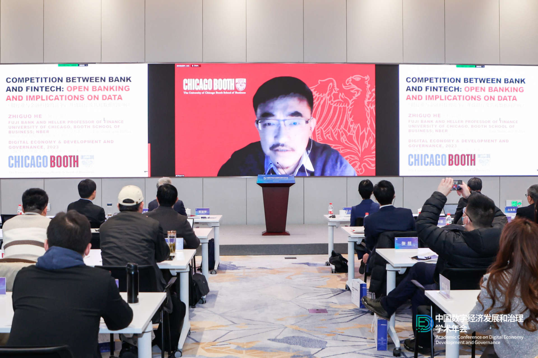 第三位演讲嘉宾美国芝加哥大学布斯商学院 Fuji Bank and Heller 金融学讲座教授何治国以“银行业与金融科技的竞争:开放银行及其对数据的影响”为题,重点阐述了开放银行的国外实践和相关研究进展。何治国教授谈到,数据打通是开放银行的显著特征,其基础是在客户的许可下开放银行数据。巴西、美国、欧洲等经济体纷纷主动探索开放银行模式。金融科技因大数据受益良多,由于数据不仅是一种抵押品,还具有独特的预测功能,在保障数据隐私安全的前提下,可以积极推动信贷市场、银行业务的开放创新发展。这需要政府、金融机构、金融科技创新企业的共同努力。