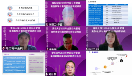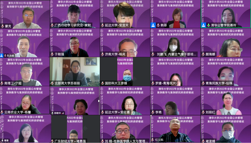 12月14日至16日,清华大学2022年全国公共管理案例教学与案例研究师资研修班在线上顺利举行。本次师资研修班由清华大学公共管理学院中国公共管理案例中心和干部教育中心联合主办,吸引了来自中国政法大学、国防科技大学、上海交通大学、哈尔滨工程大学、延边大学、西南财经大学、山西师范大学、南京理工大学、济南大学、防灾科技学院、内蒙古气象干部培训学院等29所高校(相关单位)的44位老师参加。