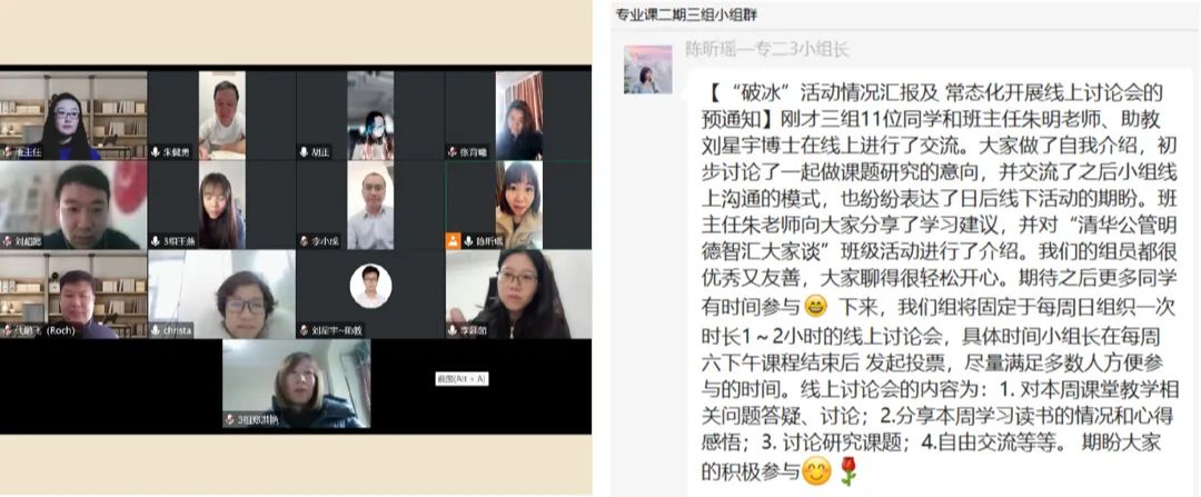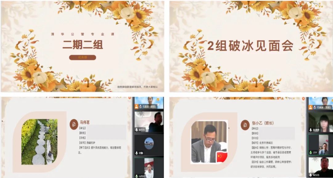 随后,学员们以小组为单位进行了破冰活动,大家互相做了初步的了解,还有的学员展示了才艺,丰富多彩的课余活动也随即展开。“公共管理专业课”二期包括16门线上直播课程及2次线下活动,整合了清华大学公共管理学院的优质资源,注重“价值、知识、技能”三位一体的公共领导力提升,帮助学员系统掌握现代化公共管理理论,卓有成效地推动组织创新与社会变革。欢迎更多的学员加入清华公管大家庭!