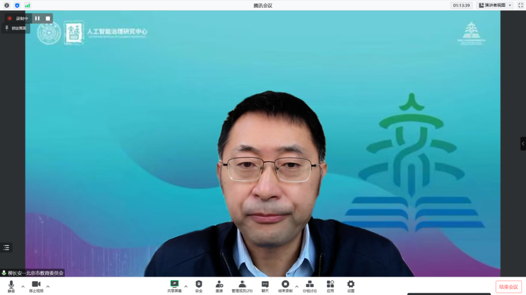 柳长安副主任在致辞中指出,北京人文社会科学研究中心建设,是北京市推动首都哲学社会科学繁荣发展一项新举措,为构建中国哲学社会科学提供学理支撑,为服务北京四个中心功能建设和国家发展提供智力支持和人才保障。中心利用清华大学在人工智能科学技术、公共管理、科技治理等方面多学科优势和积累,面向人工智能文化、伦理、教育、社会认知与治理问题开展深入研究。中心学术特色突出,人才培养优势明显,成立一年来工作成效显著,研究成果丰硕,为提升北京人文国际影响力作出了贡献。