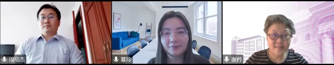 从左至右:周绍杰、慕玲、谢矜做交流发言